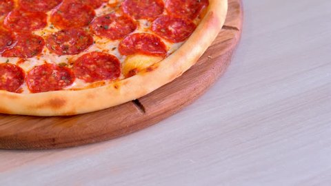 Eating Delicious Pizza Pepperoni Slice Stock Footage Video 100 Royalty Free Shutterstock