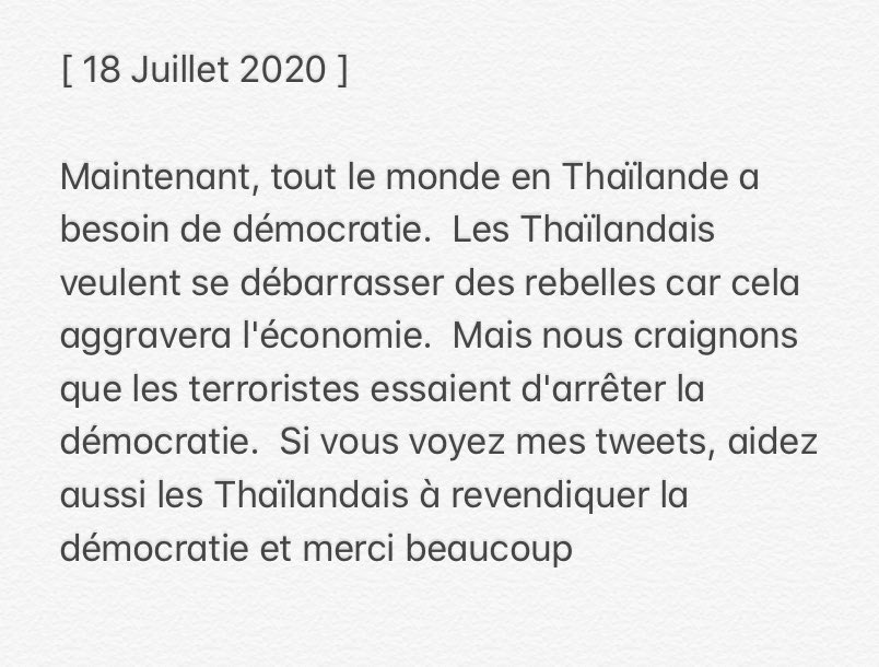 Au cours des derniers mois à partir du mois d’août, les internautes thaïlandais, en particulier les jeunes, ont mentionné les idols de Kpop thaïlandais, y compris Ten de NCT / WayV / SuperM, Nichkhun de 2PM, Bambam de GOT7, Sorn de CLC, et bien d’autres pour participer à leur mouvement démocratique. Commander un repas en ligne Avis récents 4,5 étoiles sur 392 avis Marc 10 jan 21 à 1054 Merci Anonyme 7 jan 21 à 1111 Pas mal mais j'aurais aimé que le restaurant suive plus les demandes et que ça soit plus de la cuisine authentique car on sent que c'est pas fait maison dim sum surgelés,. Merci mon ami Thaï Nous utilisons des cookies pour améliorer votre expérience utilisateur sur notre site En poursuivant votre navigation, vous déclarez accepter leur utilisation En savoir plus OK.