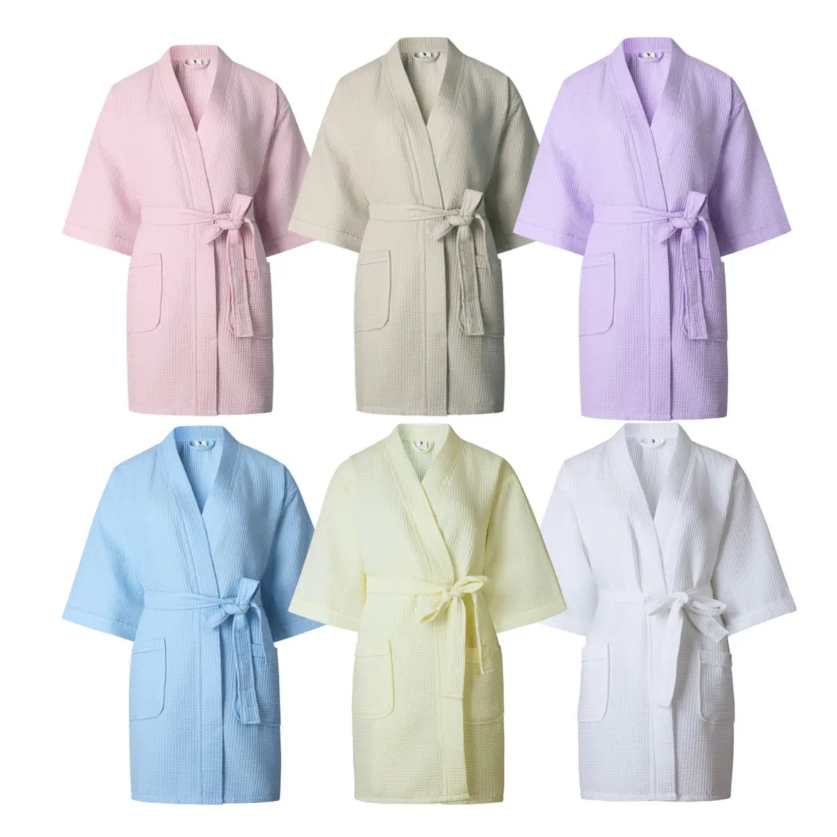 Peignoirs De Bain Vlazom Peignoir Femme Coton Gaufre Leger Robe De Chambre Unisexe Spa Sauna Peignoir De Bain Eponge Vetements