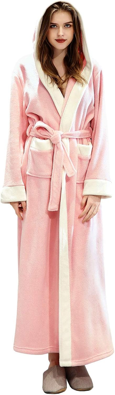 Ohyeahlady Peignoir De Bain Femme Eponge A Capuche Robe De Chambre Chaud Et Epais Rose Pour Hiver Grande Taille En Molleton Corail Polaire Amazon Fr Vetements Et Accessoires