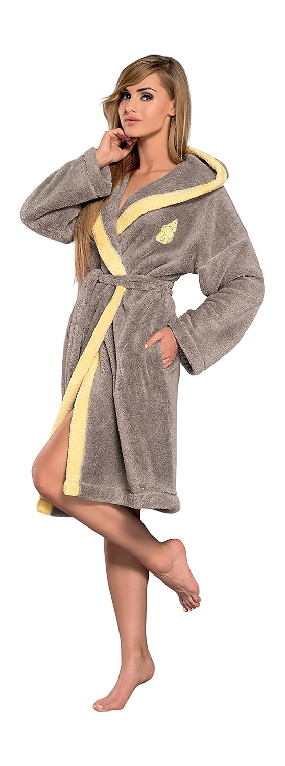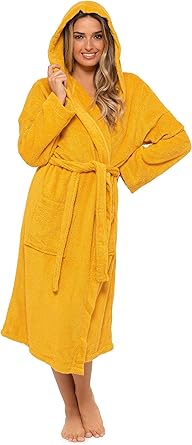 Citycomfort Robe De Chambre Pour Femmes En Coton Eponge Peignoir De Luxe Tres Absorbant Capuche Et Chale Serviette De Bain Wrap L Moutarde Amazon Fr Vetements Et Accessoires