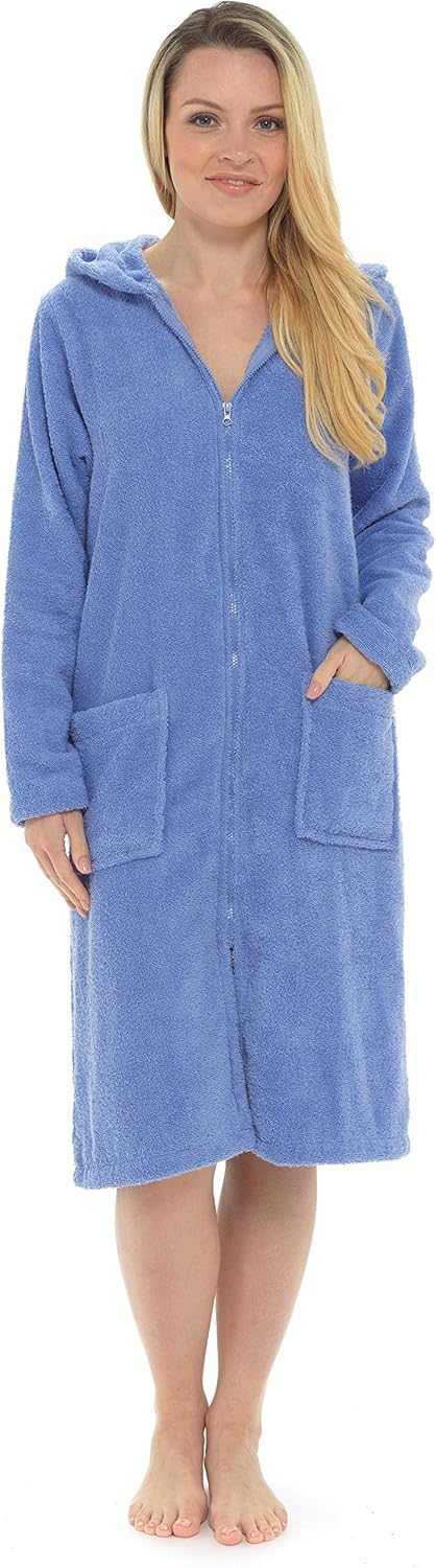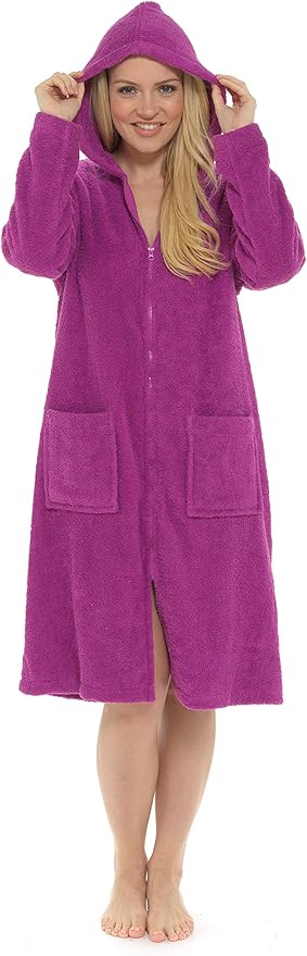 Robe De Chambre Eponge Confortable Idee Cadeau Femme Citycomfort Peignoir De Bain Femme 100 Coton Avec Capuche Sortie De Bain Fermeture Zippee Et Poches Linge De Bain Peignoirs
