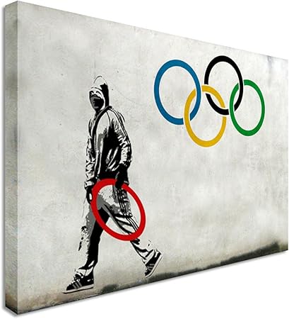 Art Okay Xl Anti Jeux Olympiques Rare Banksy Bristol Emeutes De Londres Inspire Sur Toile Decoration Murale 50 8 X 76 2 Cm Amazon Fr Cuisine Maison