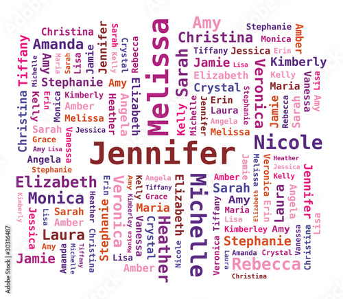 Nuage De Mots Prenoms Feminins En Anglais Affiches Murales Posters Jessica Tiffany Elizabeth Myloview Fr