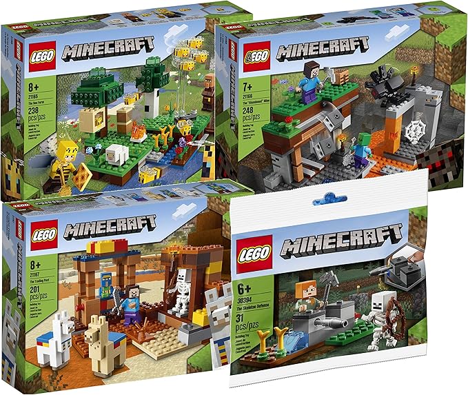 Amazon Com Exclusive Set Lego Minecraft The Bee Farm The Abandoned Mine The Trading Post And The Skeleton Defense Bundle Toys Games
