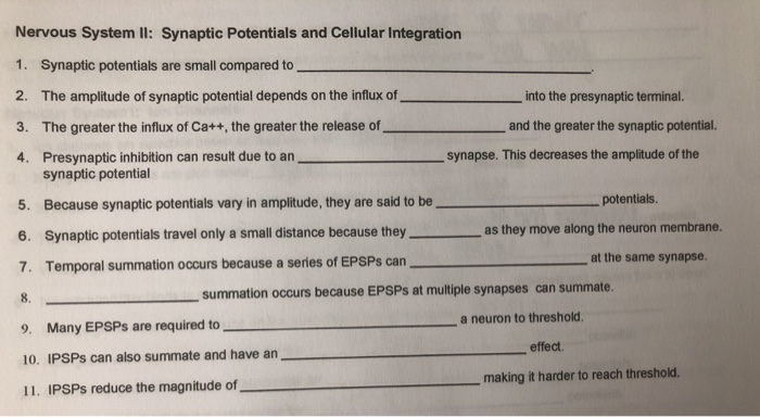 Solved Nervous System Ii Synaptic Potentials And Cellula Chegg Com