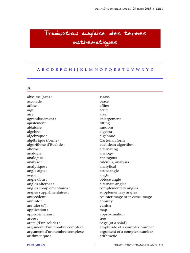 Traduction Anglaise Des Termes Mathematiques Pdf Free Download