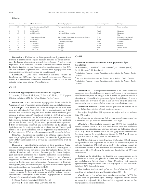 Pdf Maladie De Wegener Et Diabete Insipide Central Semantic Scholar