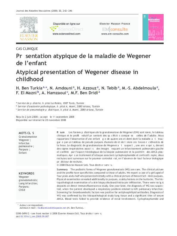 Pdf Presentation Atypique De La Maladie De Wegener De L Enfant N Tebib And H Azouz Academia Edu