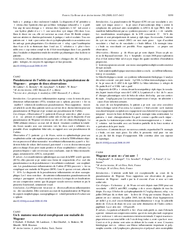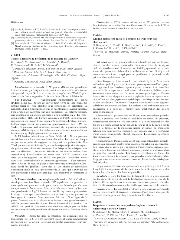 Pdf Modes Singuliers De Revelation De La Maladie De Wegener Abdelkrim Berrah And Dalila Zemmour Academia Edu