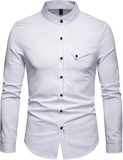 Jolime Chemise Homme Manches Longues Col Mao Avec Poche Slim Casual Business Mariage Affaires Amazon Fr Vetements Et Accessoires