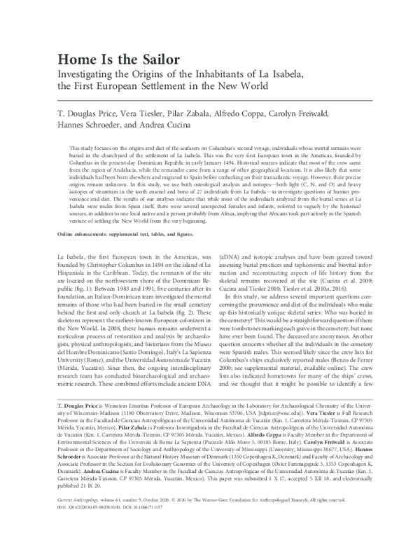 Pdf Home Is The Sailor Investigating The Origins Of The Inhabitants Of La Isabela The First European Settlement In The New World T Douglas Price Academia Edu