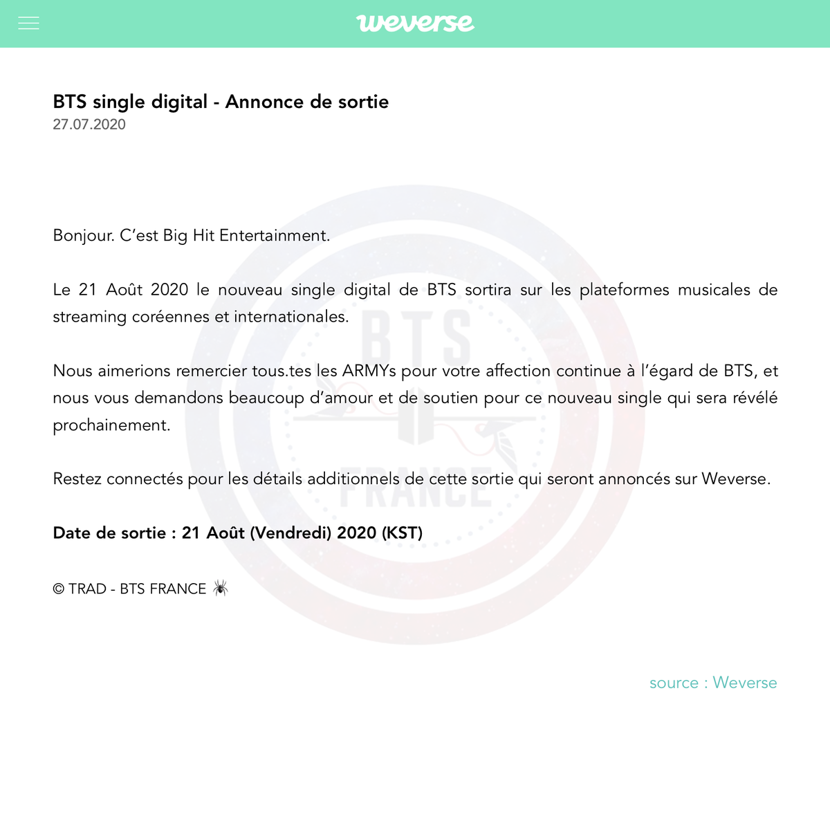 Bts Franceᴮᴱ Info Voici La Traduction De La Notice Weverseofficial De Bighitent A Propos Du Prochain Single De Bts Twt Mtvhottest Bts T Co 1y7o1kh3nm T Co Yb6tfkt9sn