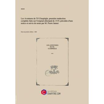 Les Aventures De Til Ulespiegle Premiere Traduction Complete Faite Sur L Original Allemand De 1519 Precedee D Une Notice Et Suivie De Notes Par M Pierre Jannet Edition De 1866 Broche Achat
