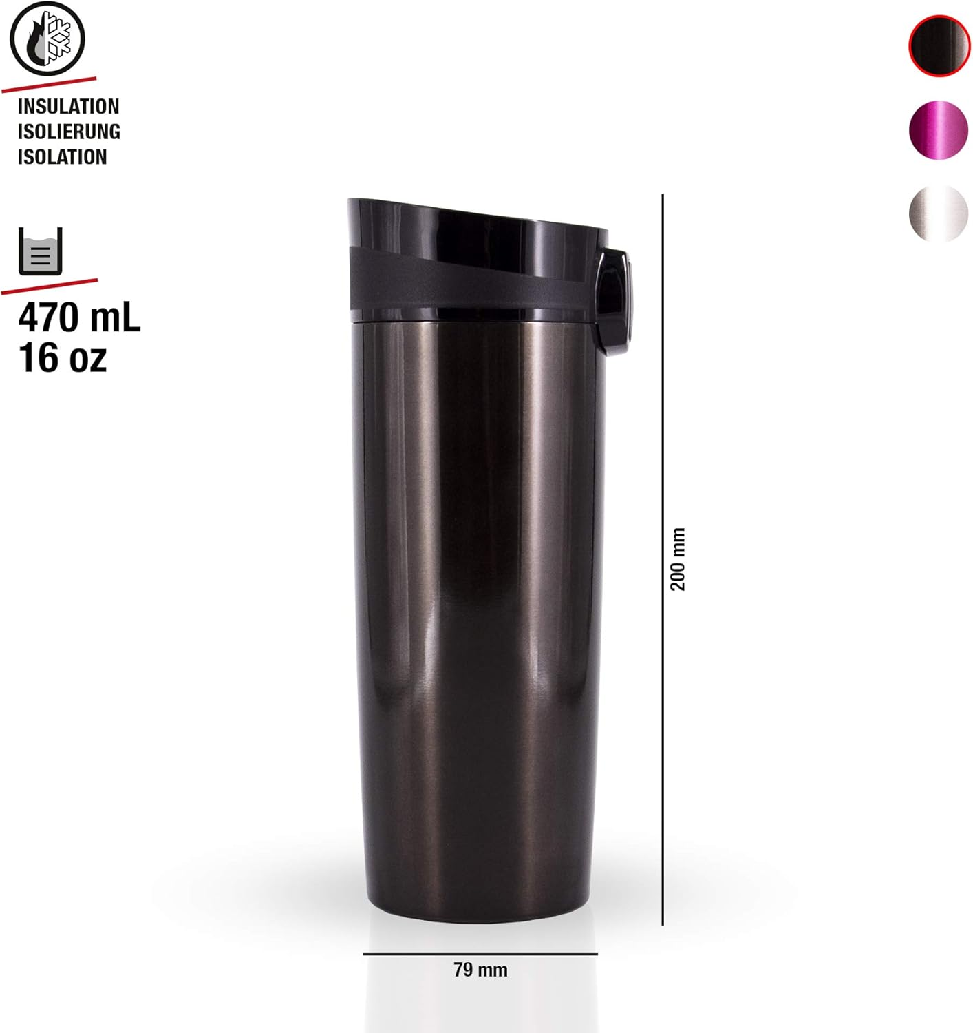 Mugs De Voyage Gobelet Isotherme A Cafe A Emporter En Acier Inoxydable Et Etanche 0 47l Thermos Sans Produit Toxique Sigg Miracle Black Mug Isotherme Cuisine Maison