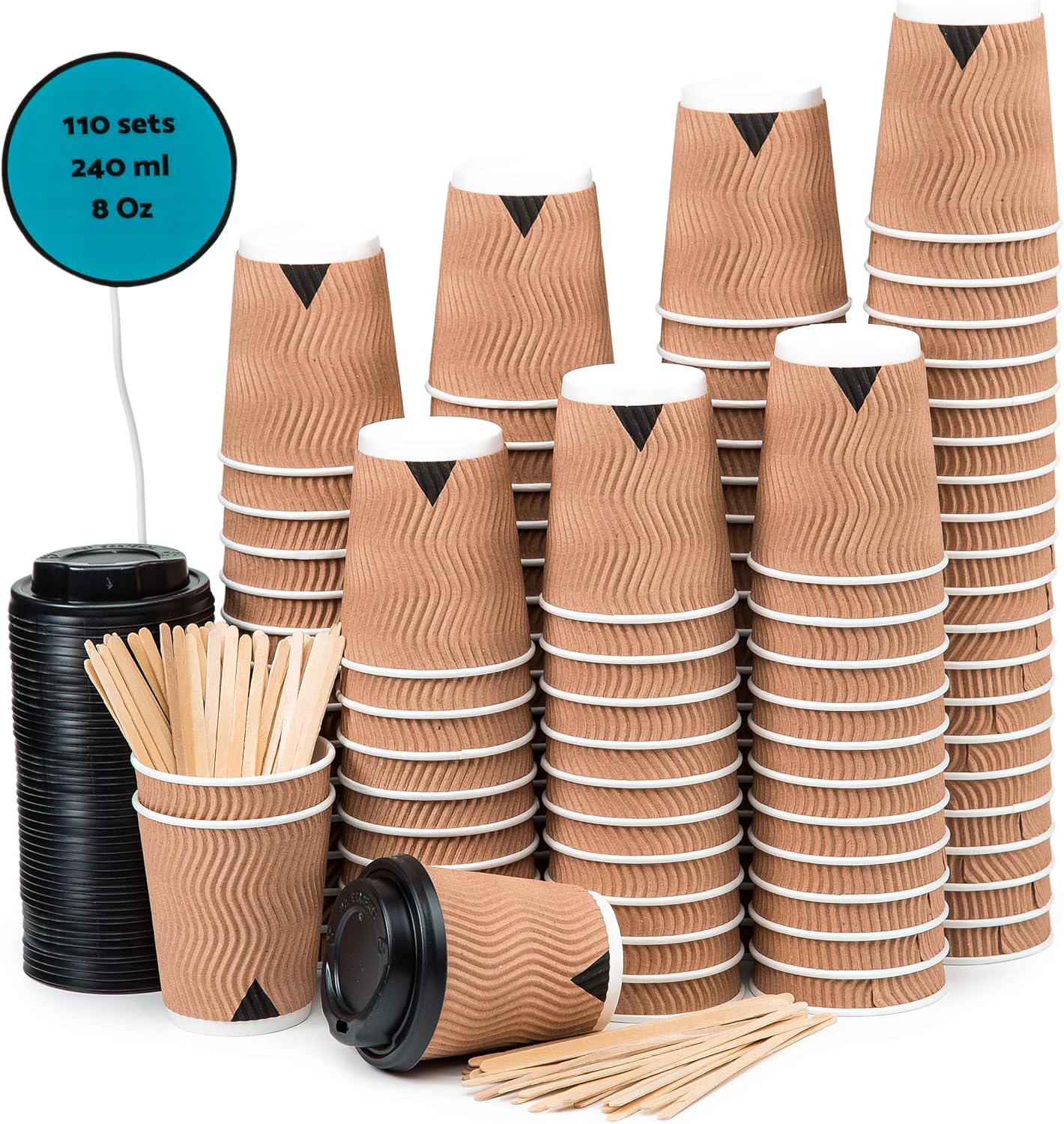 Des Boissons Chaudes Et Froides Le The 110 Kraft Ondulation Double Paroi Gobelets Carton Pour Cafe A Emporter Tasse Cafe 240ml Avec Couvercles Et Agitateurs En Bois Pour Servir Le Cafe Vaisselle