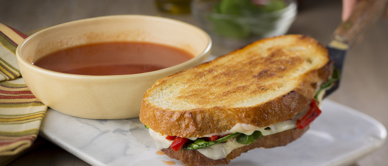 Grilled Mozzarella Spinach Red Pepper Sandwiches Campbell S Kitchen